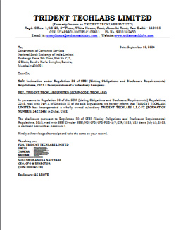 Trident Disclosure Subsidary Reg 30 Indian